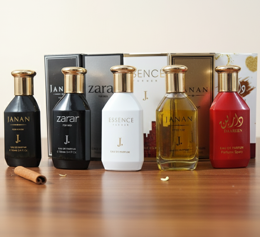 Introducing the Perfume Bar Exclusive Pack of 5, a luxurious collection inspired by J.’s most iconic fragrances. Each 50ml bottle delivers long-lasting sophistication and charm β€” perfect for every mood, every moment. πŸ’«